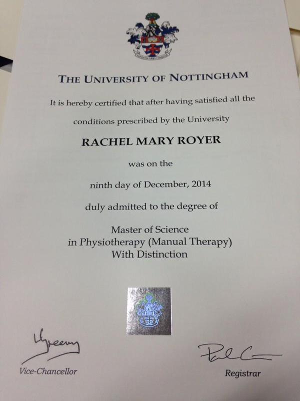 Well done Danni Pennachia and Rachel Royer who both got a first in their MSc (Manual Therapy) at the University of Nottingham.